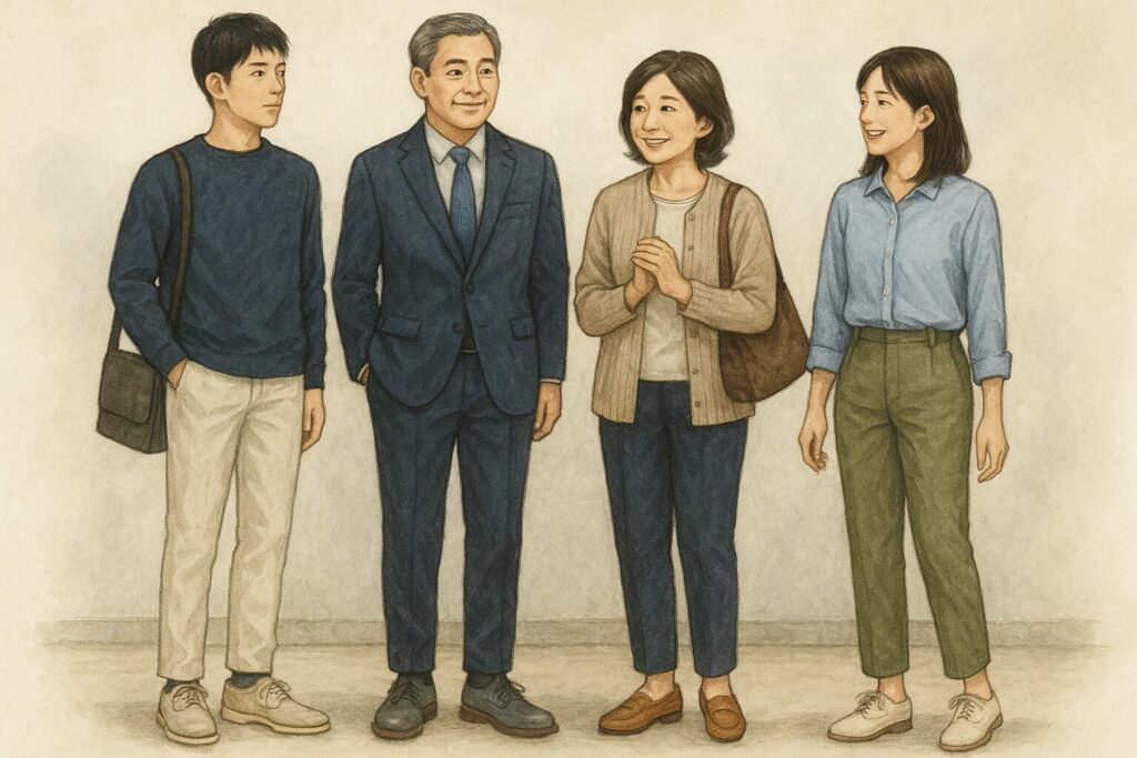 若年層は、汎用性を最優先にプレーントゥやキャップトゥ、シンプルなローファーから着手すると失敗が少なくなります。