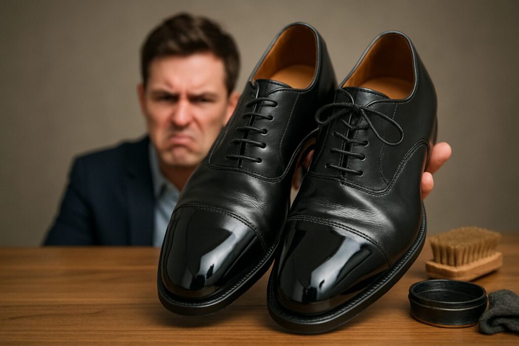 過剰に磨かれた靴は、自然なツヤを通り越して「ビニールのような光沢」に見えることがあります。この状態は、かえって安っぽさを与えやすく、フォーマルさや上品さを損ないます。