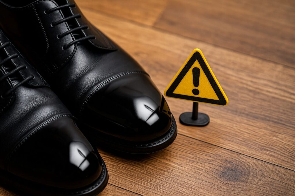 鏡面磨きが似合わないと感じられる場面には、いくつかの共通点があります。その多くは、靴の種類・服装とのバランス・技術不足に起因します。