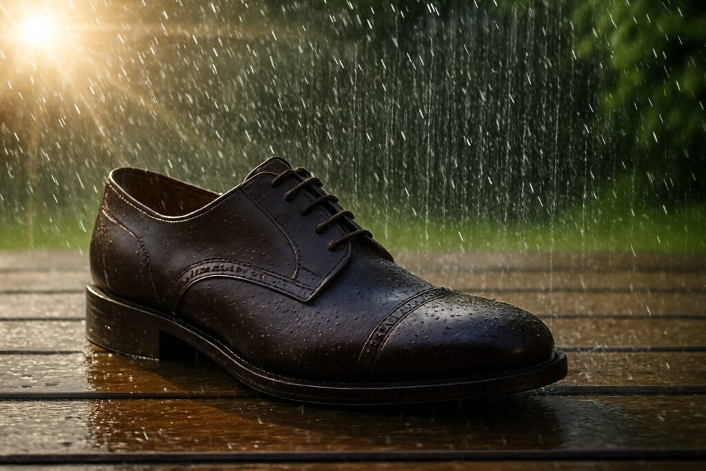 鏡面仕上げの靴はワックスでコーティングされているため、水分に弱く、雨に濡れると白く濁ったり剥がれたりすることがあります。また、夏の強い日差しや梅雨時の湿気もワックスに影響を与えやすく、外出先で見た目が崩れるリスクもあります。