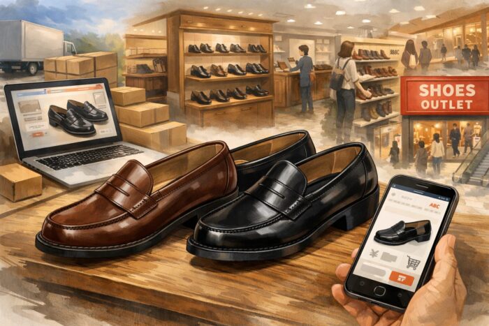 試着で決めたいなら、直営店や公式店舗が最優先です。ローファーは紐で締められないため、長さよりも踵の収まりと甲の当たりが重要になります。店頭で履き比べできると、2Eと3Eの違いも体感で判断できます。