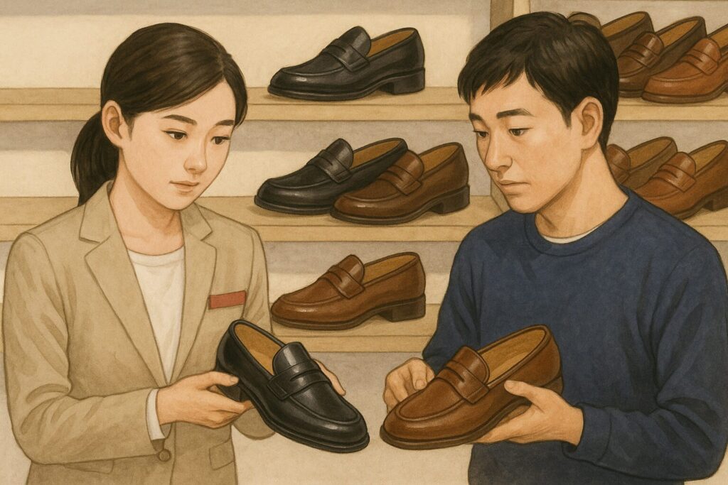 複数の定番を履き比べる場合、最初の一歩で踵が収まっているか、前滑りで甲が当たらないかに注目します。