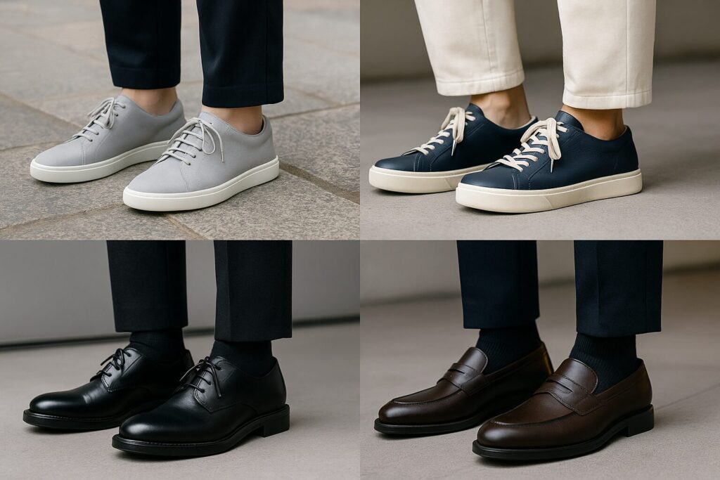 - ビジネス寄りや式典で使う場合:無地のプレーントゥやローファーで木型は標準〜やや細身、カラーは黒またはダークブラウン
