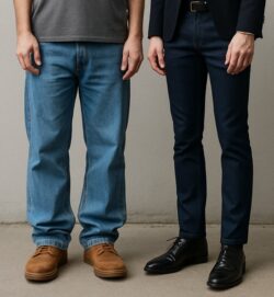 ビジネスカジュアルでジーンズを取り入れる場合、まず押さえておきたいのは「きれいめに見えること」です。ラフすぎたり、色落ちが強いものは避け清潔感と適度なフォーマルさを意識するのがポイントになります。