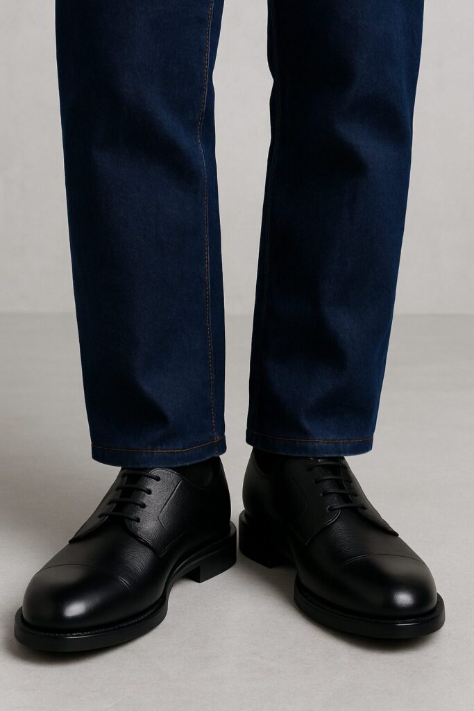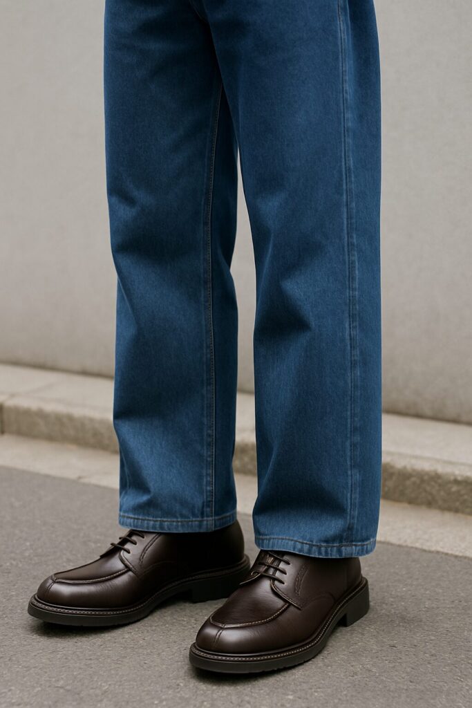 カジュアルなジーパンと、ドレス感が強すぎる革靴を組み合わせると、足元だけが浮いて見えることがあります。