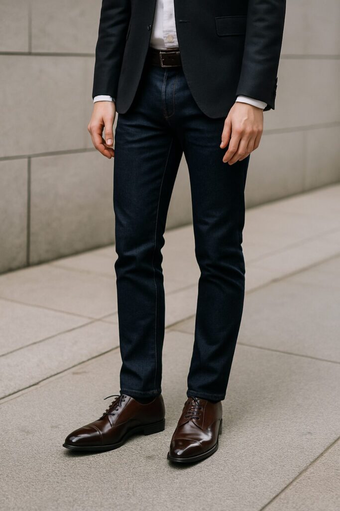 それぞれの要素が整っていればジーンズと革靴は十分におしゃれに見せることが可能です。選び方だけでなく「整える意識」が見た目に大きく影響します。