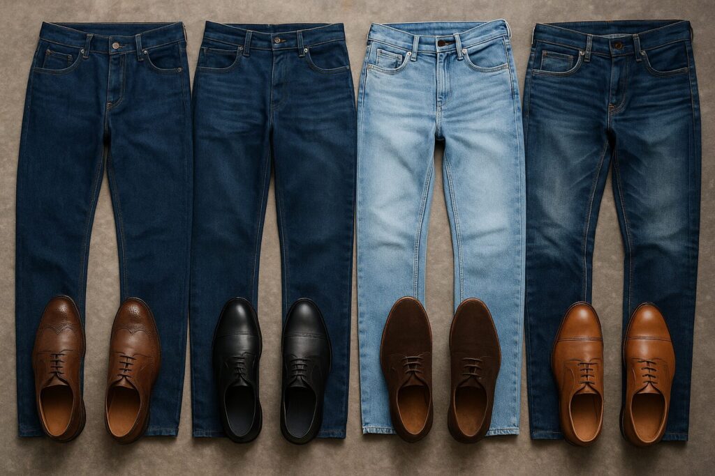 ジーパンと革靴の組み合わせは、選び方そのものよりも「どう合わせるか」で印象が大きく変わります。以下に、特に意識しておくべき4つの観点を整理して解説します。