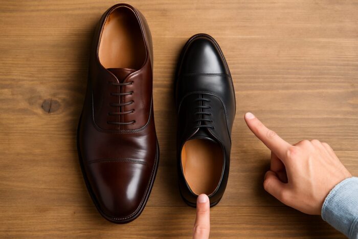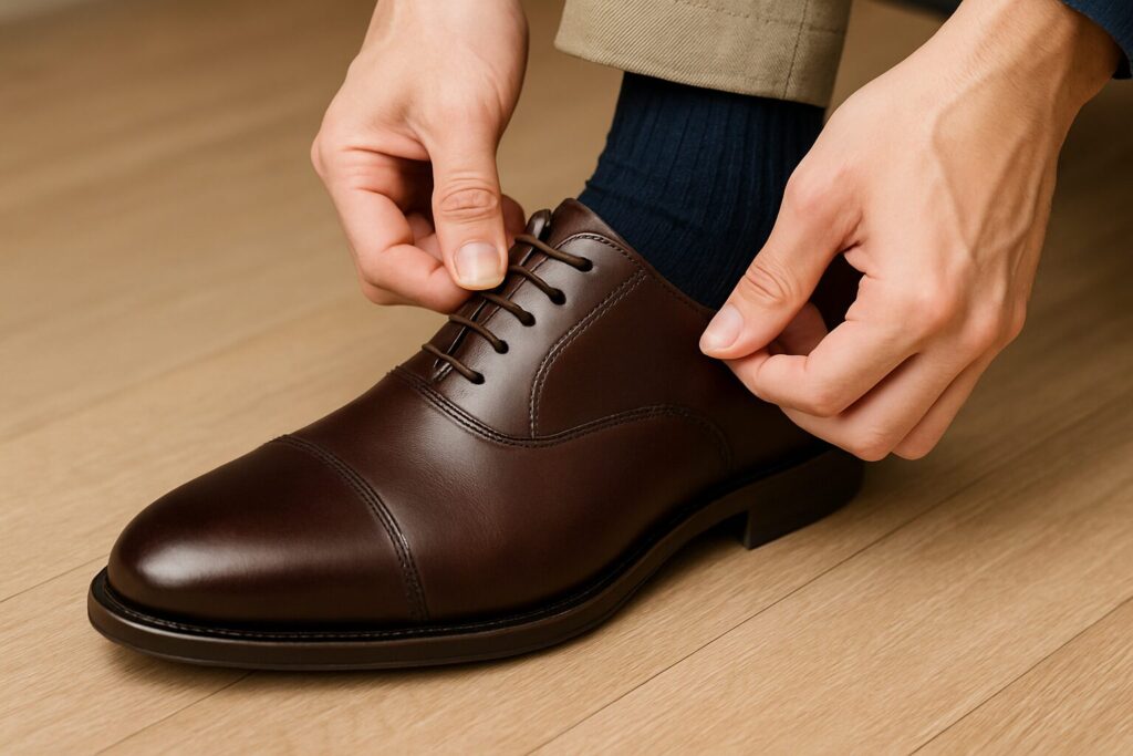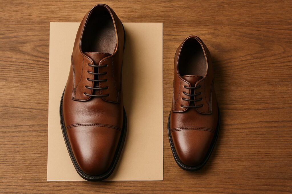 革靴を選ぶ際は履き心地と見た目の両方を満たすサイズを見つけることが大切です。履き心地を優先しすぎて大きめを選ぶと、かかとが浮いたりシワが深く入ったりして見た目が損なわれます。