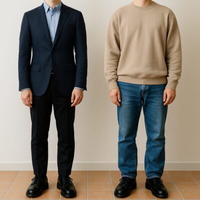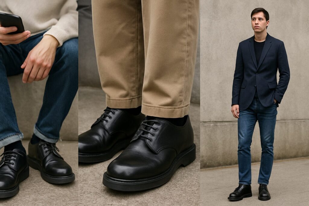 例えば、装飾のあるローファーやカラフルなスニーカーに慣れている人が履くと、全体のコーディネートが控えめになりすぎてしまうケースもあります。