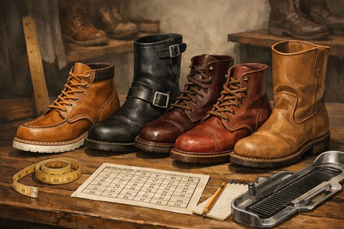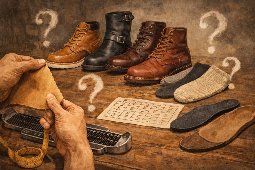 本記事ではレッドウィングの主要モデルを中心に、モデル別の考え方を整理します。インソールや中敷き、厚手靴下やブーツソックスの使い分け、かかと浮きとヒールスリップ対策、試着のチェックポイント、通販での選び方までまとめます。