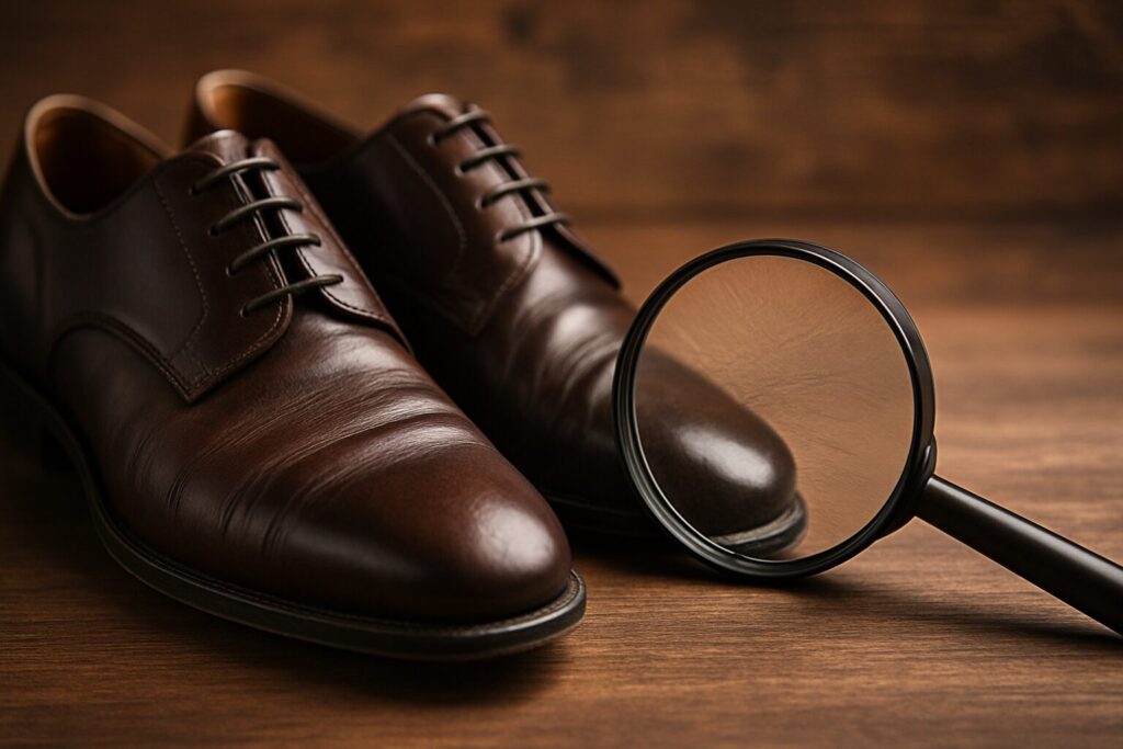 見た目は革靴に近くても、手触りやツヤ、履き込んだときの風合いが異なるため、通常の本革と同じ基準で評価されると「質感が悪い」と受け取られてしまうことがあります。