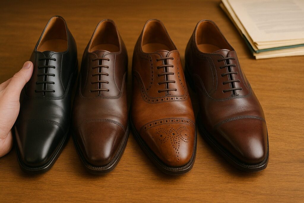 - 黒やダークブラウンといった定番色が中心で、ビジネスシューズとして使いやすいモデルが多く見られる