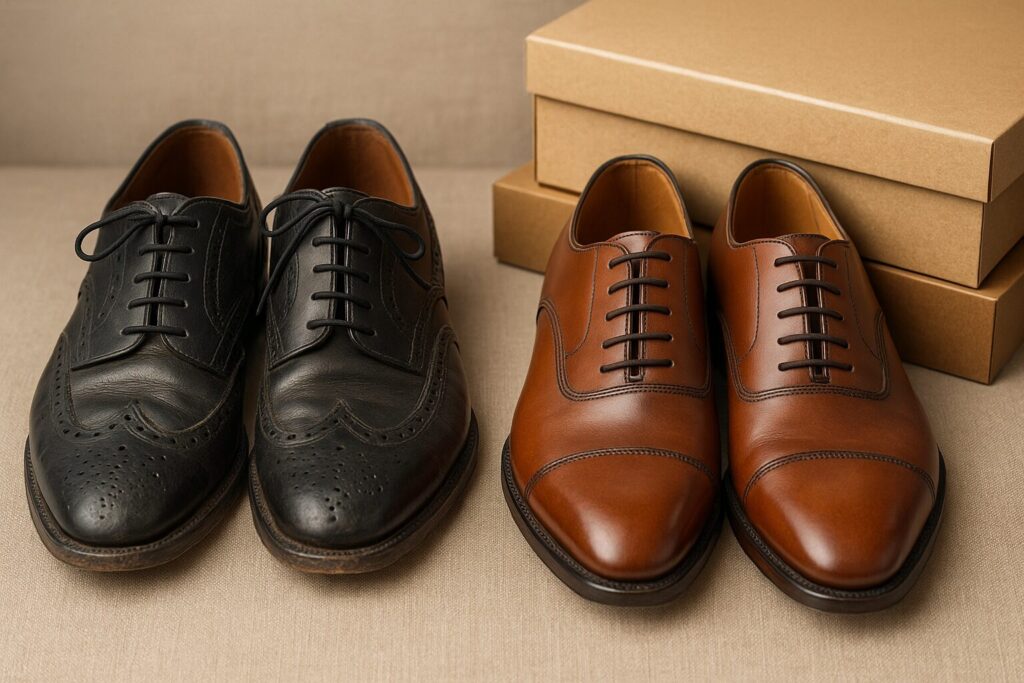 - 長期間展示された靴は、革の乾燥やソールのわずかな変形に注意する