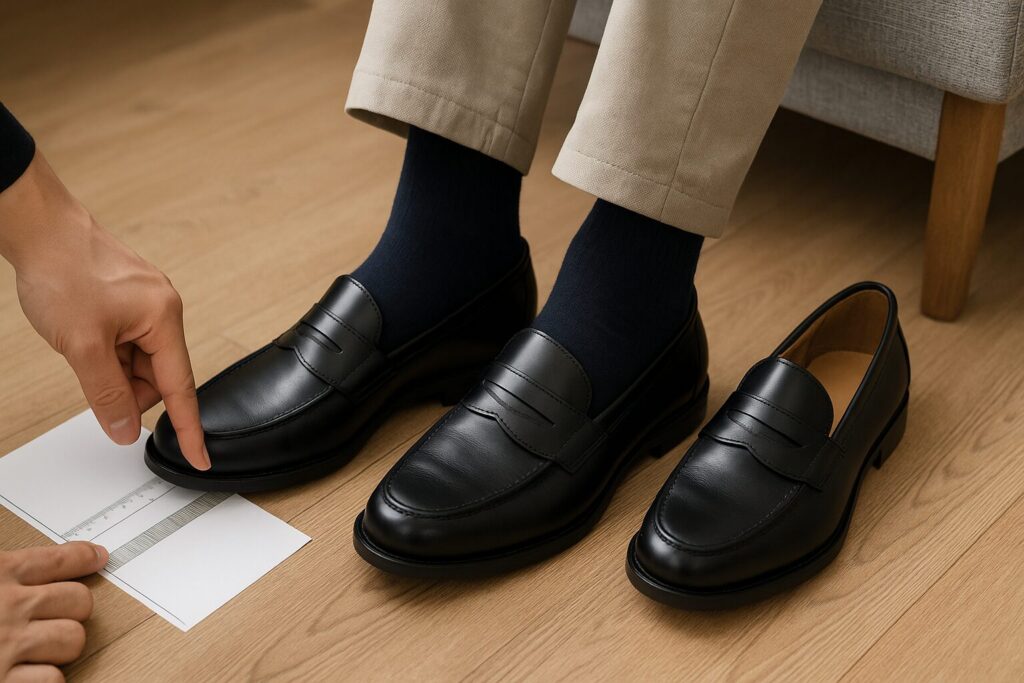また、靴には捨て寸(つま先の余裕)が必要で、スニーカーと革靴では表記の意味が異なることもあります。ローファーは足長に対して適切な捨て寸を確保しつつ、甲と幅をややタイトに収めるのが安定への近道です。