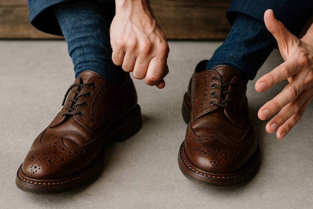 トリッカーズの靴は堅牢な作りで長持ちする反面、新品時には硬さを感じやすく、痛みが出ることがあります。特に足首や踵、甲に圧迫感が出るケースが多く見られます。