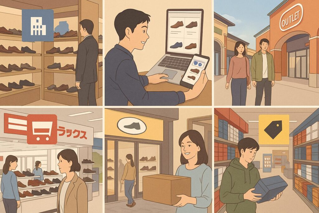 - アウトレットは2〜5割安 サイズ欠けと状態差に注意